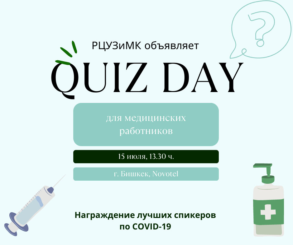 Сегодня, 15 июля, в Бишкеке прошел Quiz Day для медицинских работников под названием «Вакцина спасает!». С приветственной речью выступили заместитель директора Республиканского центра укрепления здоровья и массовой коммуникации Нуржамал Шейшеева, заместитель директора >>> Подробнее